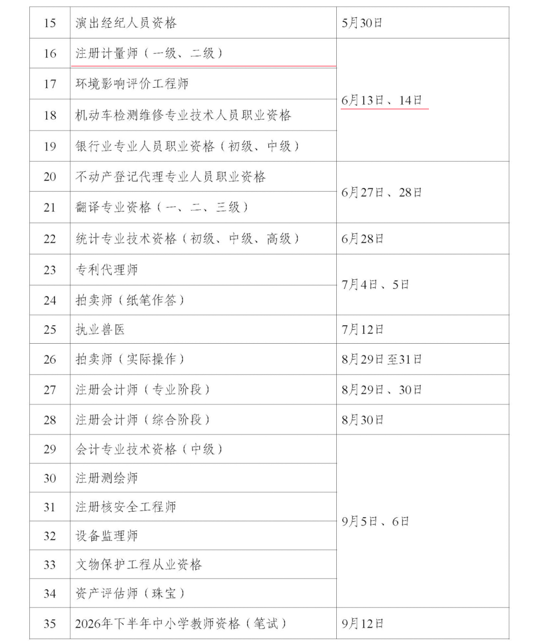 为切实做好专业技术人员职业资格考试规划与管理工作,方便广大专业技术人员参加职业资格考试,经征求有关部门同意,现就2026年度专业技术人员职业资格考试工作计划及有关事项通知如下: