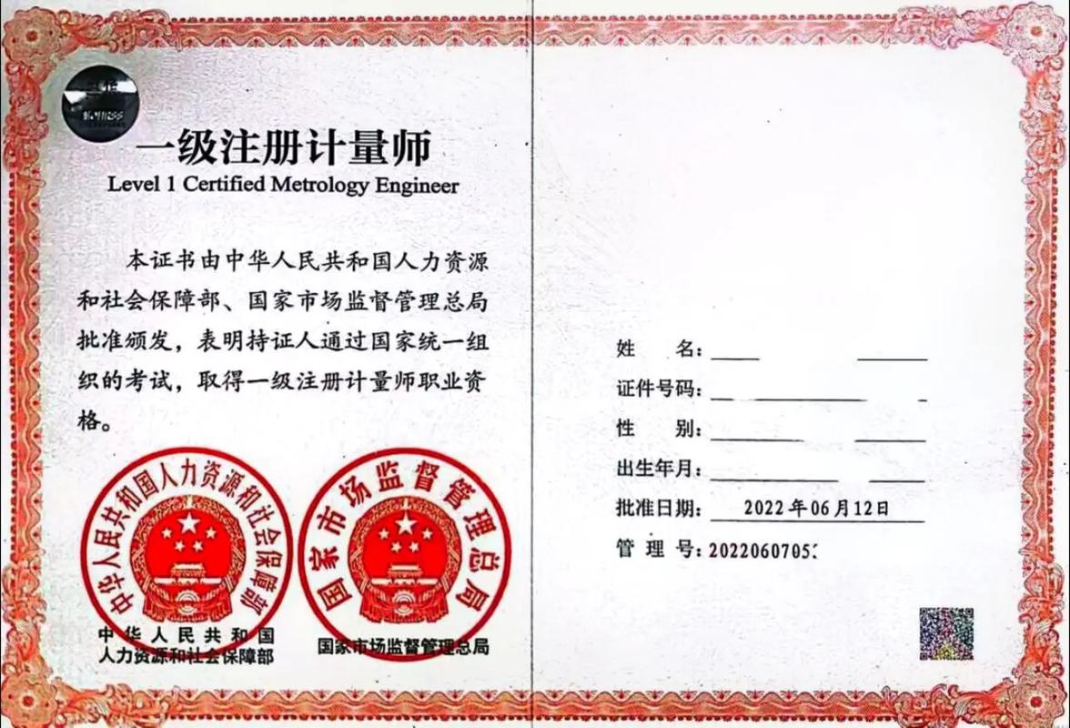 一级注册计量师证书样本